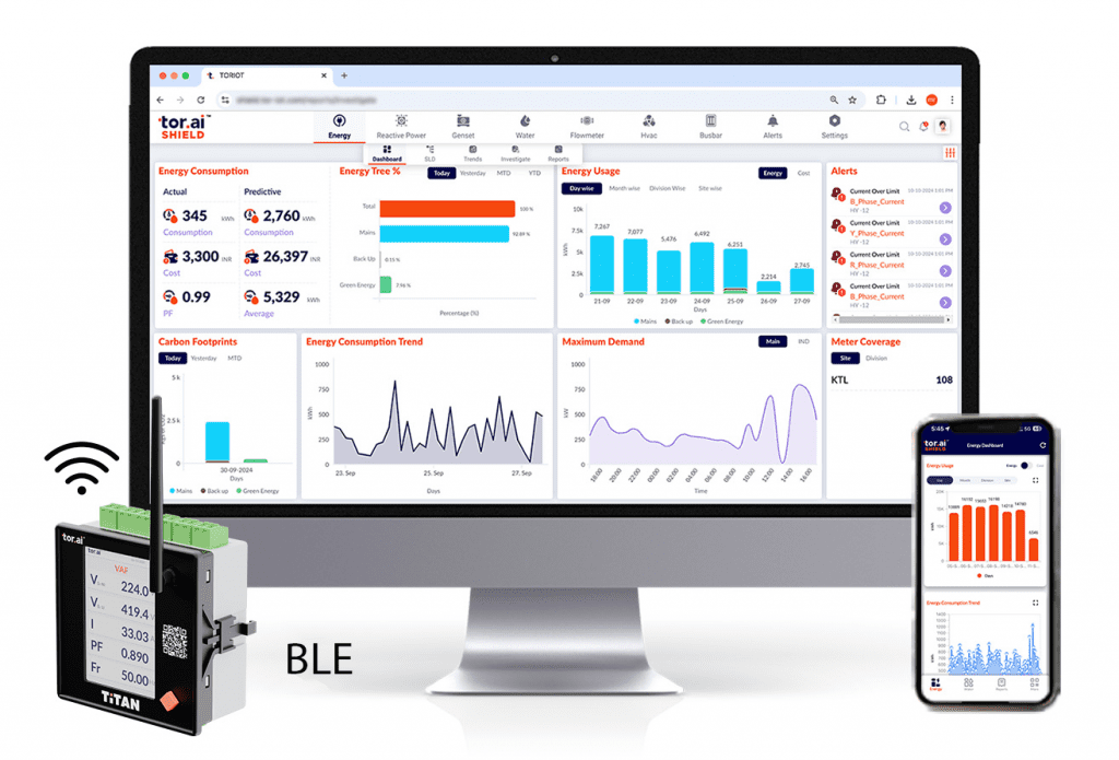 Titan 300 Series comes with free EMS integration, offering centralized dashboards, trend analysis, and downloadable reports. Users gain visibility into voltage, current, power factor, THD, and energy consumption. Ideal for plants seeking analytics without additional software costs.